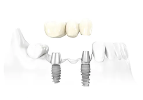 การปลูกรากฟันเทียมในกรณีที่ผู้ป่วยมีช่องว่างที่กว้างเกิดจากการสูญเสียฟันหลายซี่ในบริเวณเดียวกันนั้นสามารถทำได้โดย การปลูกรากเทียมพร้อมสะพานฟัน ซึ่งทันตกรรมประดิษฐ์แบบสะพานฟันนั้นจะมีครอบฟันลอย (pontic) เป็นเชื่อมติดระหว่างครอบฟันที่ใช้ยึดบนรากเทียม อ่านต่อ… (คลิก)